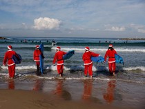 Tel Aviv – Aksi peselancar berkostum Sinterklas di Tel Aviv menghadirkan suasana Natal yang unik. Gelombang musim dingin berubah menjadi panggung penuh keceriaan.