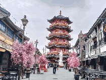 Lorong menuju pagoda terasa fotogenik dengan jajaran bangunan di kanan-kiri serta pohon hias berwarna merah muda. Tak heran jika area ini kerap dimanfaatkan pengunjung untuk berfoto, baik sekadar mengabadikan suasana maupun untuk konten media sosial.